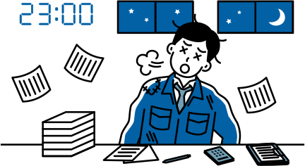 現場に関する指示書や図面、書類が机の上にあふれてる…。これってどの現場?